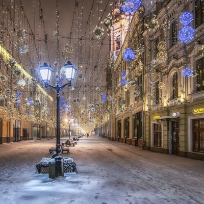 09:00 - Обзорная автобусная экскурсия по новогоднему красочному городу «Москва Многоликая» с фото-стопами: Тверская улица, Манежная площадь, Большой театр, Лубянка, Новодевичий монастырь, Воробьевы горы (смотровая площадка), Университет, Кутузовский проспект, Васильевский спуск, Кремлевская набережная.