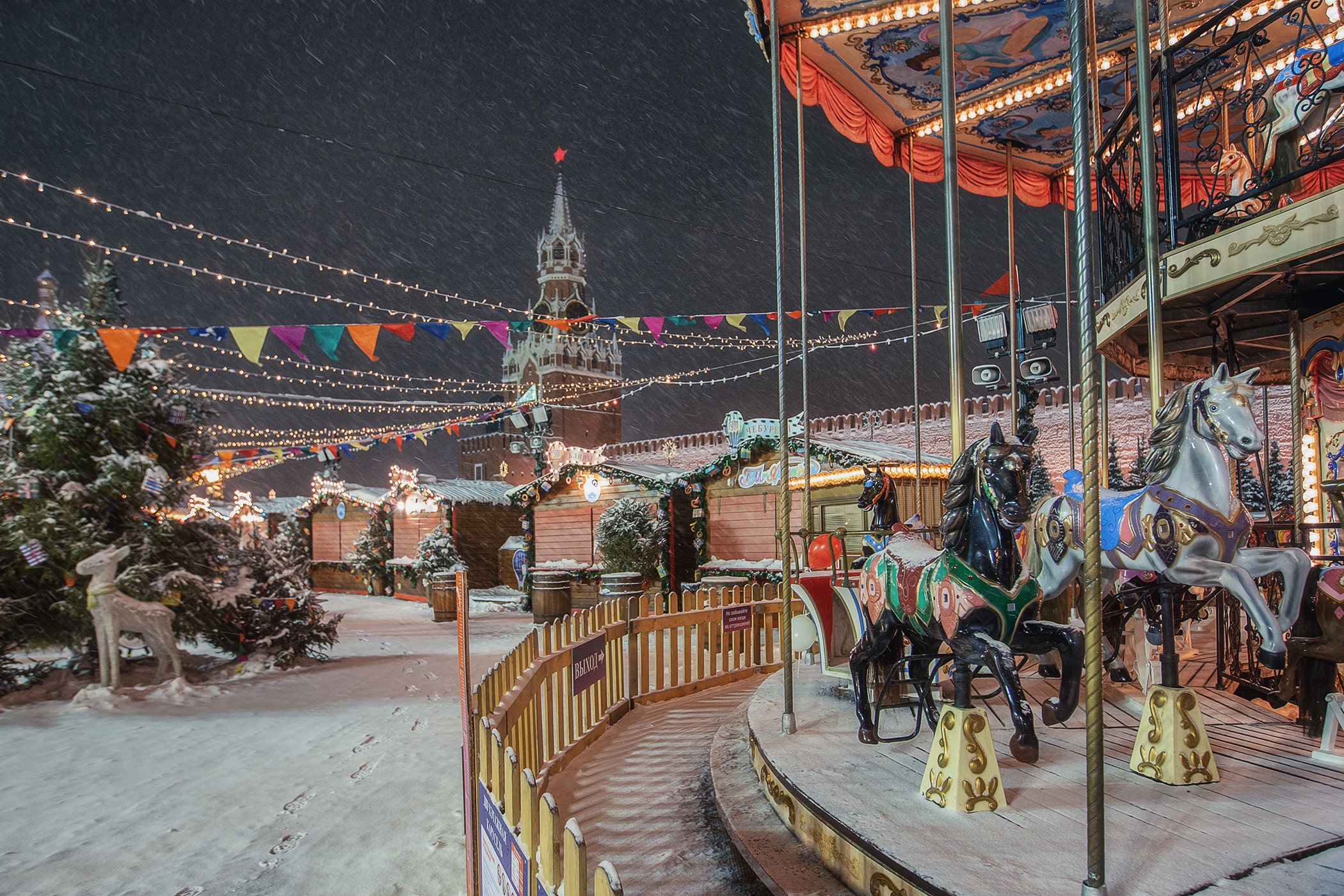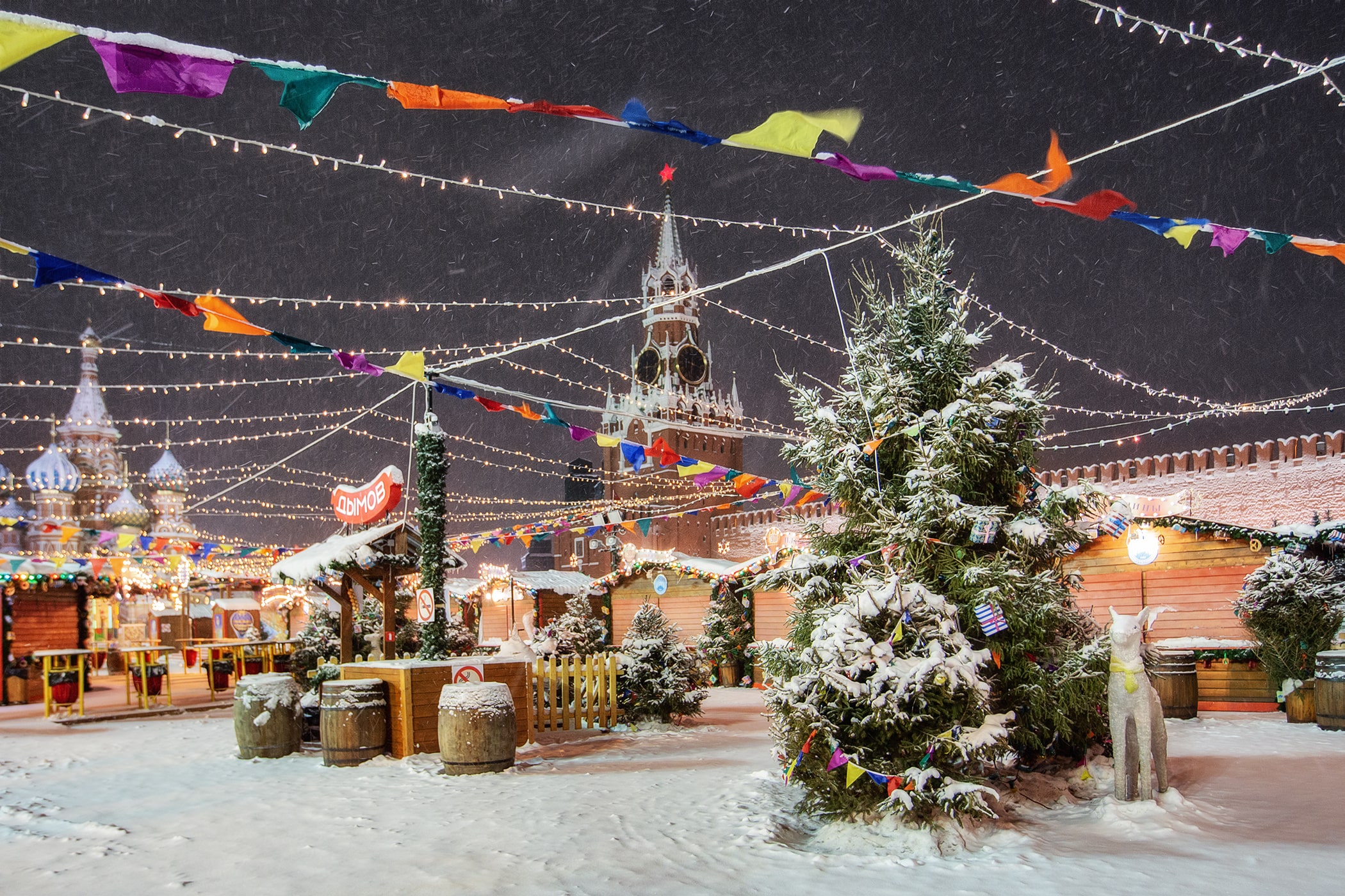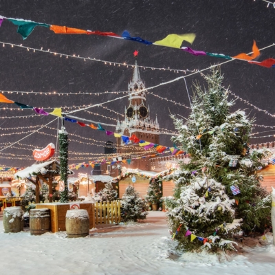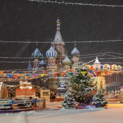 12:00 – Прогулка по Красной площади, где располагаются знаменитый каток, веселые карусели и красочные ярмарочные палатки. Внешний осмотр Собора Василия Блаженного, ГУМа и Московского Кремля.